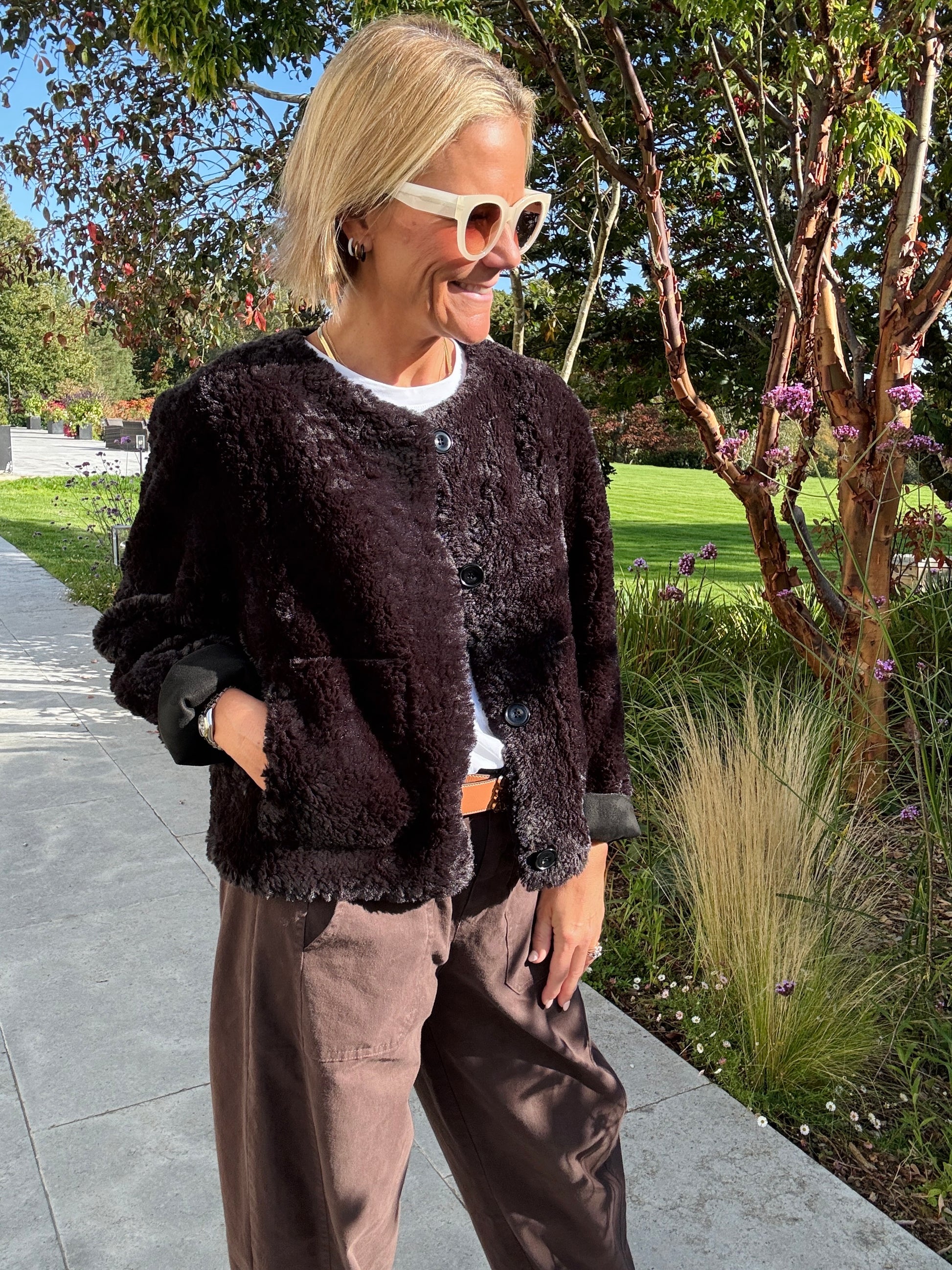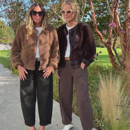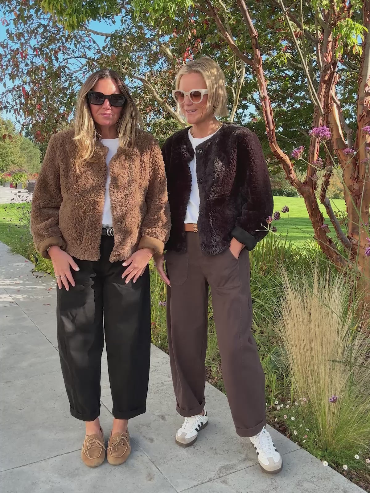 Whether paired with our barrel leg trousers for a casual outing or dressed up for more of an evening look this jacket is a versatile staple that brings both sophistication and coziness to your wardrobe.