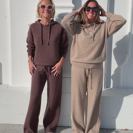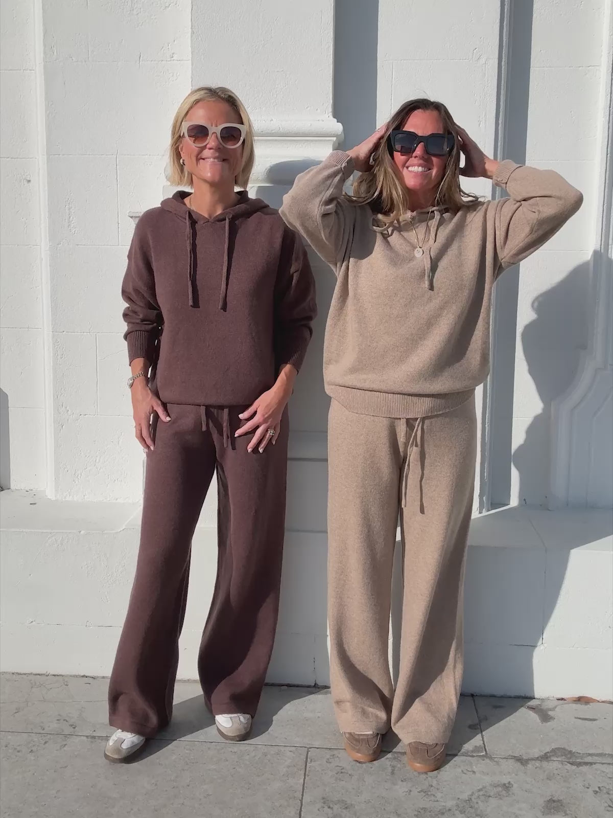 Relax in style with this effortlessly elegant loungewear set. Complete with a cozy hooded jumper and matching wide-leg trousers, it’s super comfortable but also super cool. It is perfect for lounging at home or heading out for the day, this coordinated set is a smart luxurious addition to your casual loungewear.