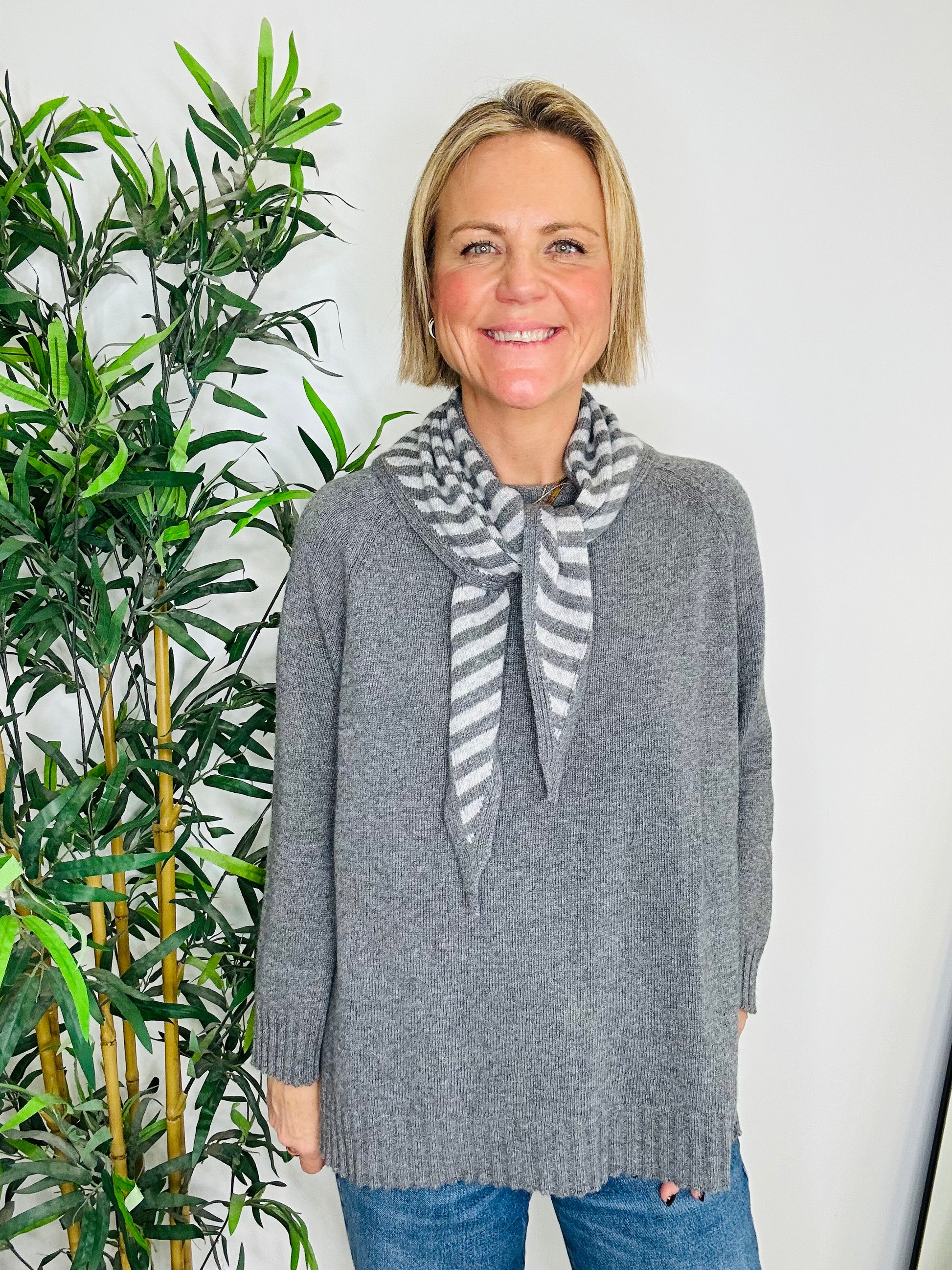 We have brought back our sell out triangle scarves in some new colours. Choose from one of our stripe or plain colourways. We love wearing them with any of our jumpers and they add a little touch of personality to your everyday outfit. They are a perfect Christmas present too!