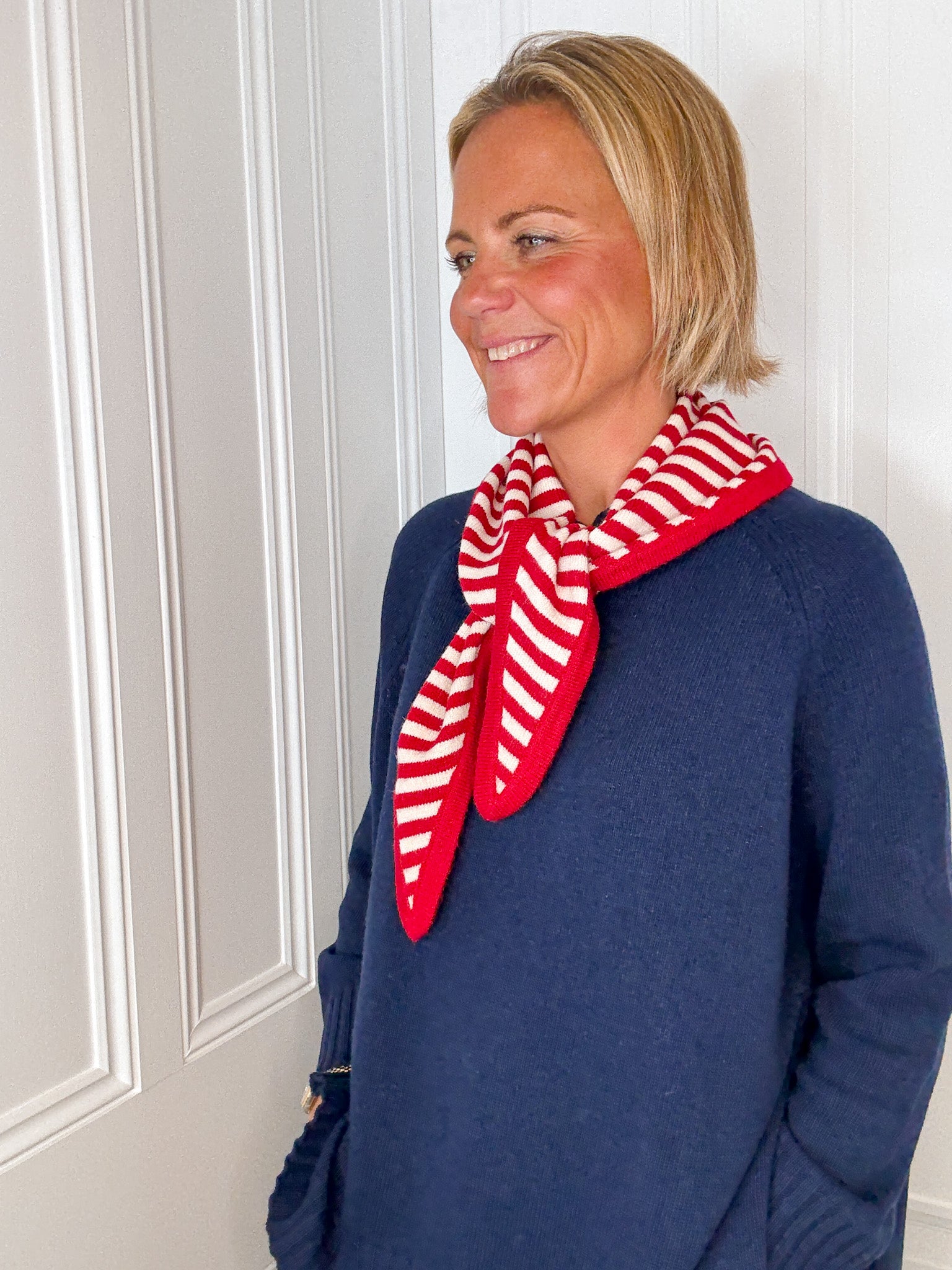 They are a boxy loose fit knit with subtle side splits for ease of movement and a flattering drape. They are perfect for layering or wearing on their own, and pair effortlessly with denim, our barrel leg trousers, or skirts for a chic, understated look. We also love wearing them with our Striped triangle scarves, or over our check shirts so the check frill collar & cuffs add a pop of contrasting colour.
