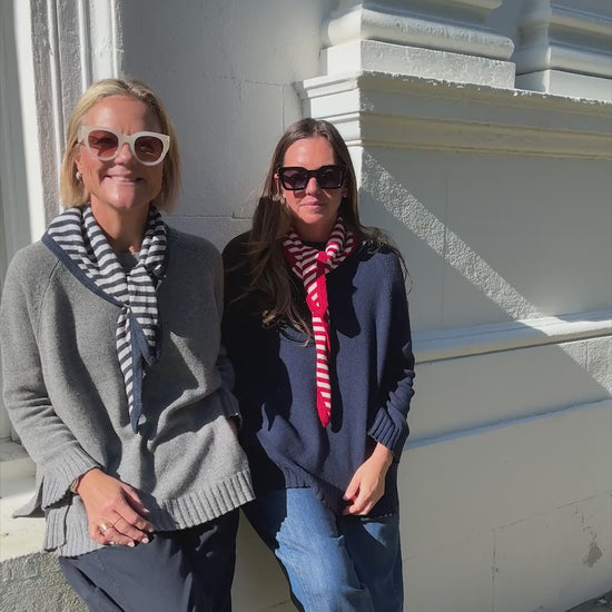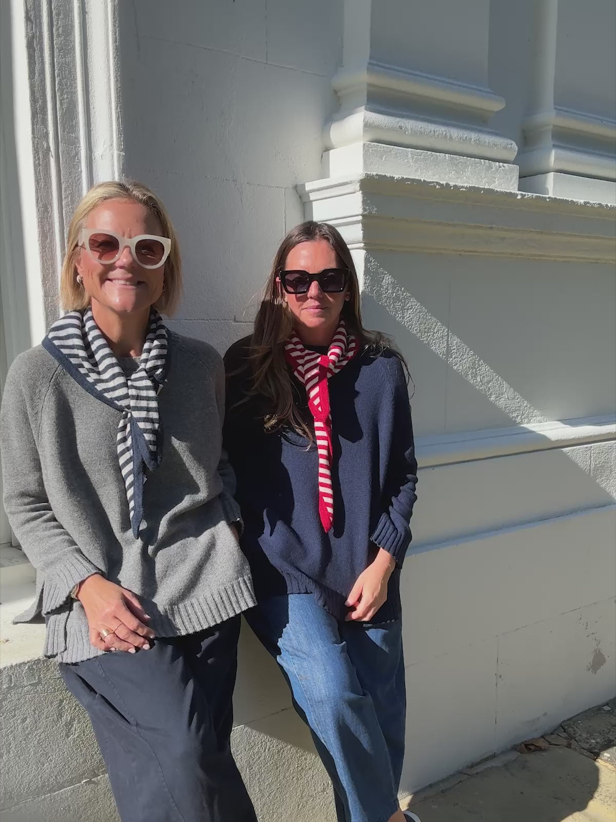 Add this red and cream striped colour with one of our one of our knit jumpers or with a white tee and a pair of our barrel trousers and you are good to go. It is an easy way to add a pop of colour to your day.